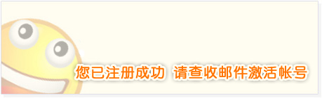 提交成功后出现右图界面。 查收注册时的电子邮箱,激活帐号。 |